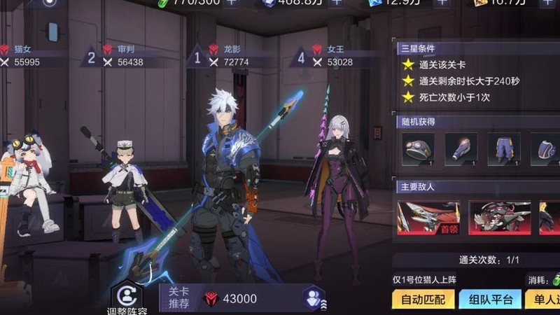 组队匹配建议优先选择史诗级角色,其次为审判或女王。