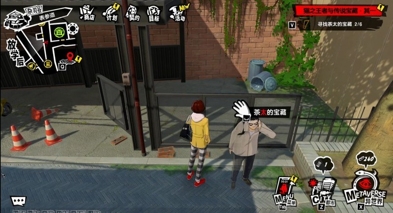 咖啡店旁,一位大叔对着花盆发呆,满脸愁容。他似乎没仔细看过种植指南,不知去哪买营养剂,一直无法开始种植。这时我们只需按提示操作,一个滑铲到花店,轻松获得特效营养剂送给他,就能解锁第5个猫猫宝藏。