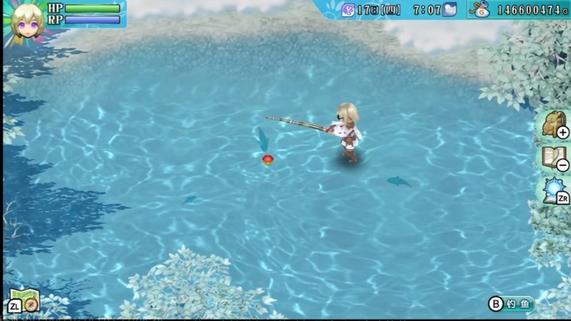 符文工房系列的一大乐趣在于钓鱼系统,鱼儿清晰可见,提升了垂钓的成功率与趣味性。