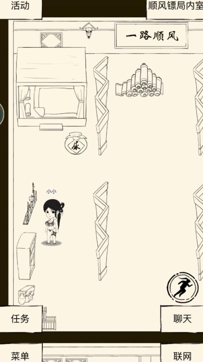 前往顺丰镖局,左侧柜中取染血黑衣,刀架上拿银制小刀,再到床边触发后续任务。