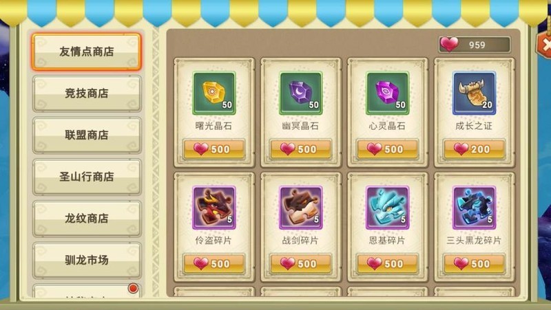 结交好友后通过互动积累友情点,可在友情商店兑换晶石、成长之证和萌龙碎片等奖励。