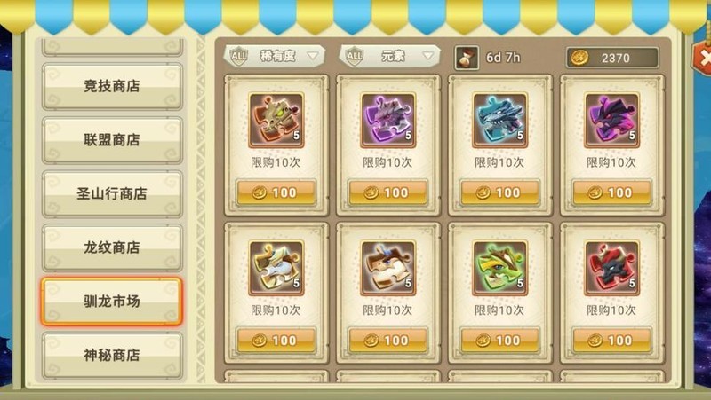 驯龙市场开放后,提交订单可获得龙币,龙币用于在商店兑换已激活图鉴的传奇与史诗龙碎片。