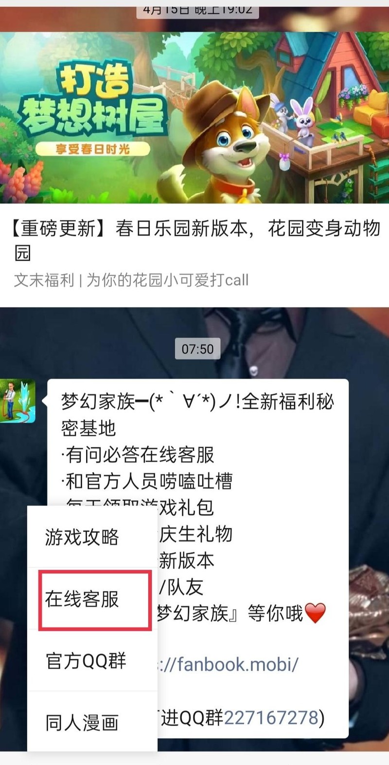 关注微信公众号,进入花园服务,联系梦幻花园正版手游客服。