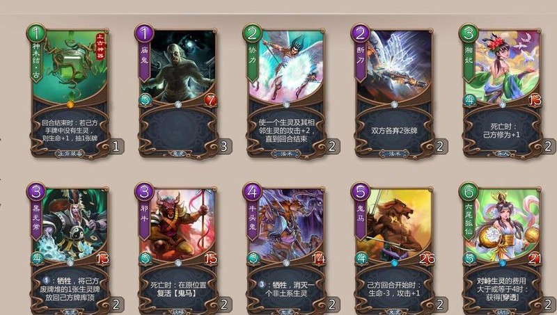 神木结·古:卡组强度取决于生灵品质,抽到即用,无需固定核心,强力生灵优先选用,弱小的可直接舍弃,庙鬼仅作前期过渡之用。