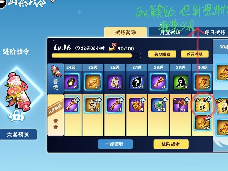 战令奖励虽适合轻度氪金玩家,但切勿期待必得强力SSR或稀有ss卷,若有收获实属幸运,未抽中也无需沮丧,保持平常心对待。