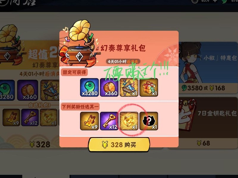 每次活动都会推出限时礼包,通常设三个档位:30、168和328元。