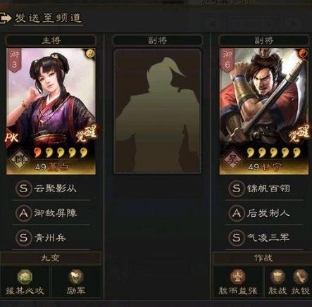 甘宁为副将,搭配后发制人与气凌三军战法。