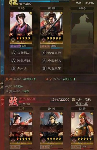 大家好,我是三战配将君!今天分享一套另类碰瓷黑科技——甘宁+董白双人组合,低损打爆虎臣吴骑,不占主流战法,反击爆发惊人,实战效果炸裂!