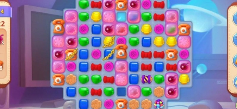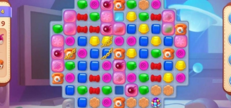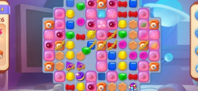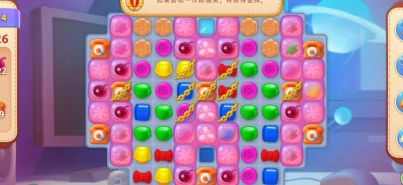 开局后,由于锁链和饼干阻碍上方图块匹配,应优先从下方消除,合成加速道具,逐步清理障碍,为后续操作创造有利条件。