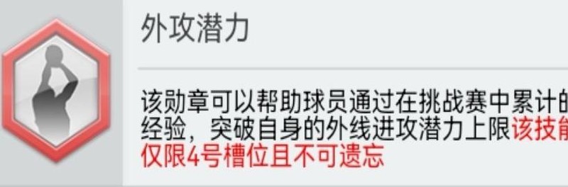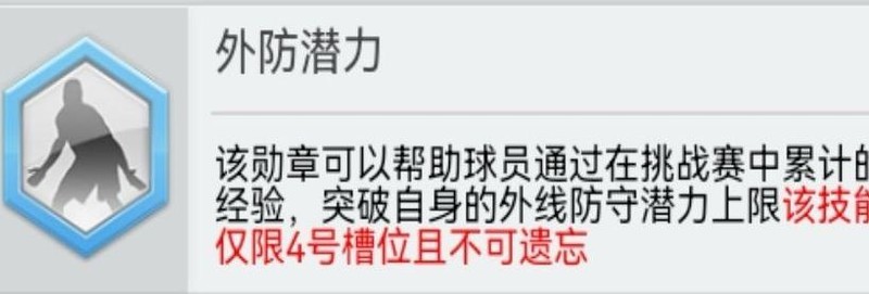 限定位置徽章,仅限四位置使用且无法卸下,专为氪金玩家设计,提升球员外线进攻潜力,弥补天赋短板。