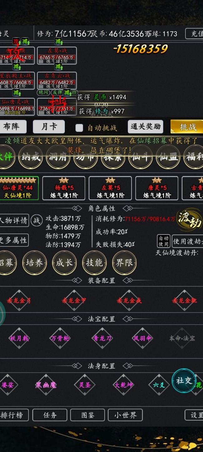 队伍新增天龙皇,全队攻击力提升15%,主角为道清。