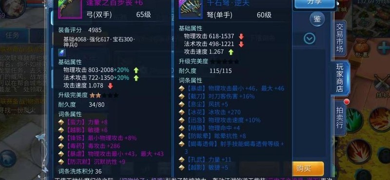 蓝色装备无固定属性,最多可随机生成十条可变属性,极品蓝装潜力巨大,甚至能超越鬼装,但获取难度极高。