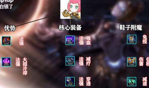 老白建议选择常规法师装备,根据战局灵活搭配鞋子附魔。