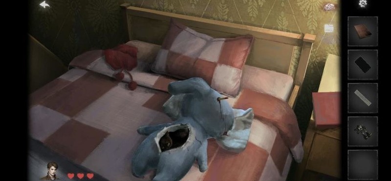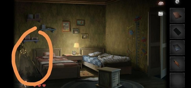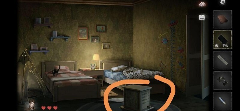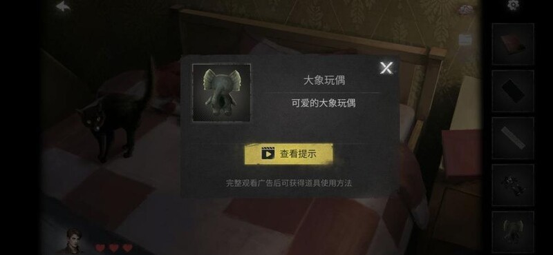 点击左侧床铺,用剪刀剪开大象,猫猫现身,取得大象玩偶。