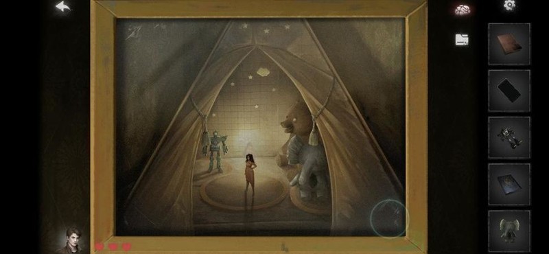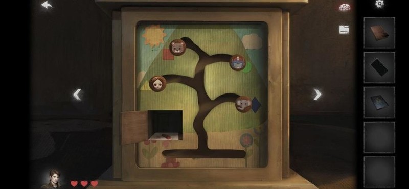 把木块摆放在儿童房树形区域,按墙上画中的位置将芭比娃娃、小象和机器人放进帐篷,拉下帐篷帘,使影子与帘上图案吻合,再调整柜上木块位置,即可取得蜡笔和乐谱。