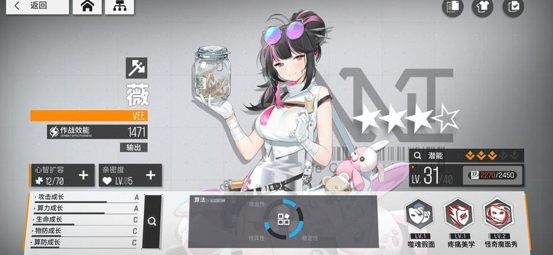 薇位列第二,是唯一的远程角色,其攻击为特殊类型,无法暴击,但无视距离,且无法被闪避或伤害屏障阻挡。