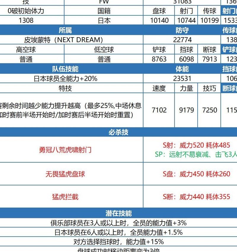突进依赖猜拳,强吃成功率低;防守侧重挡球属性,铲断偏弱易被突破;该卡值得抽取,主打日本队必抽,使用海外阵容可酌情跳过。
