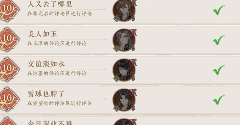 每日最多评论五位不同名士,建议按顺序进行,避免重复。可同步点赞以记录进度,通过点赞情况确认是否已评论。累计完成1/5/10/20/40人可解锁相应成就。