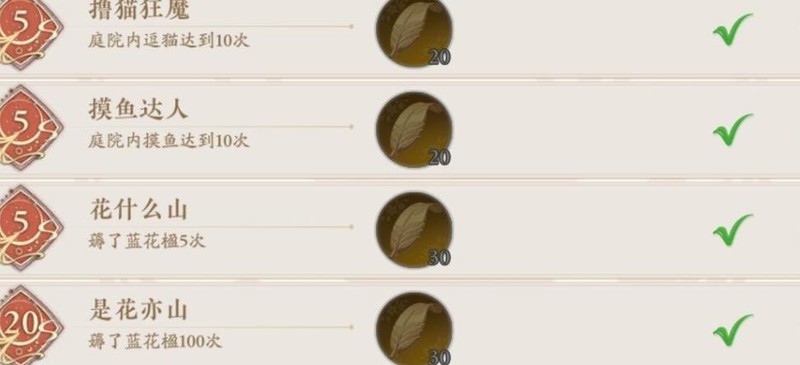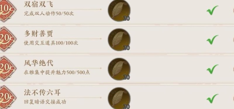 参与雅集累计时长分别达2、5、10小时,可依次解锁醉心春兰秋菊意悟自然天地观之日升月移三项成就,时长可分次累积,无需连续在同一房间完成。