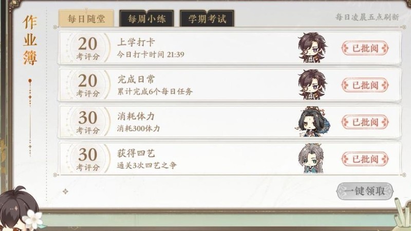 打卡时间依据完成任务的点击时刻,而非登录系统的时间,适用于学期作业中的打卡任务。
