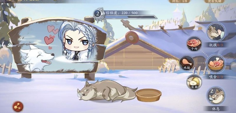 现有8项成就,其中4项与场景有关(随狼崽信任度提升解锁),2项关联滑雪小游戏(试玩即可完成),另有2项涉及互动摸狼崽。