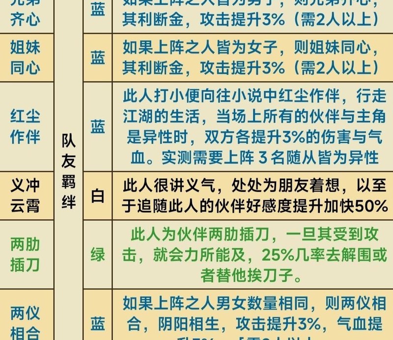 团队加成天赋仅推荐选择两仪相合,若队伍未达到两男两女组合,不建议洗练其他团队类天赋,可优先考虑属性或面板加成类天赋。