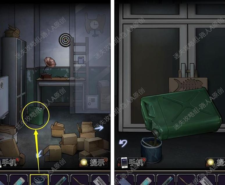 前往隐秘教室,把颜料桶置于汽油桶旁并注满汽油。