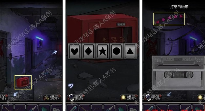 沿走廊右侧前行,按磁带指示打开消防栓,取出里面的瓦刀工具。