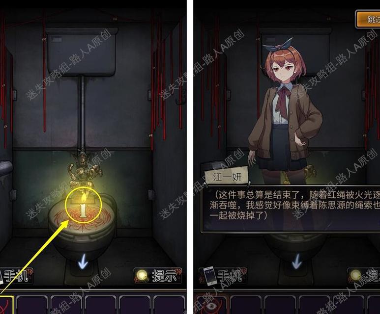 把蜡烛置于马桶上方的法阵中,用打火机点燃,焚烧红绳。