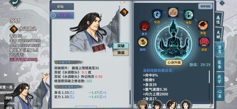 带上苏轼后,队友饮酒不再眩晕,佩芷与屈心的武学对怒气需求较高,此时便可安心让他们饮酒提升战力,大幅增强队伍输出能力。