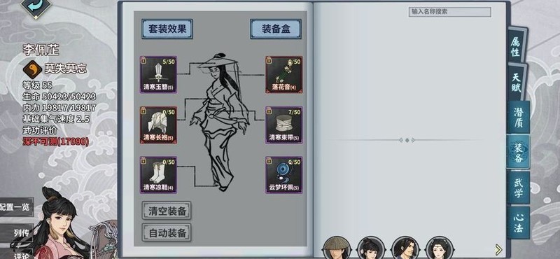 我的角色图已晒出,目前仅一本紫色心法升满,除主角外其他心诀均未突破玄玉境界。装备词条尚未洗练,因部分装备选择不够理想。佩芷的武器由春节活动碎片合成,后续无名关卡尚未开启。若哪位高手认为当前配置具备通关条件,还望赐教打法技巧,定当万分感谢。