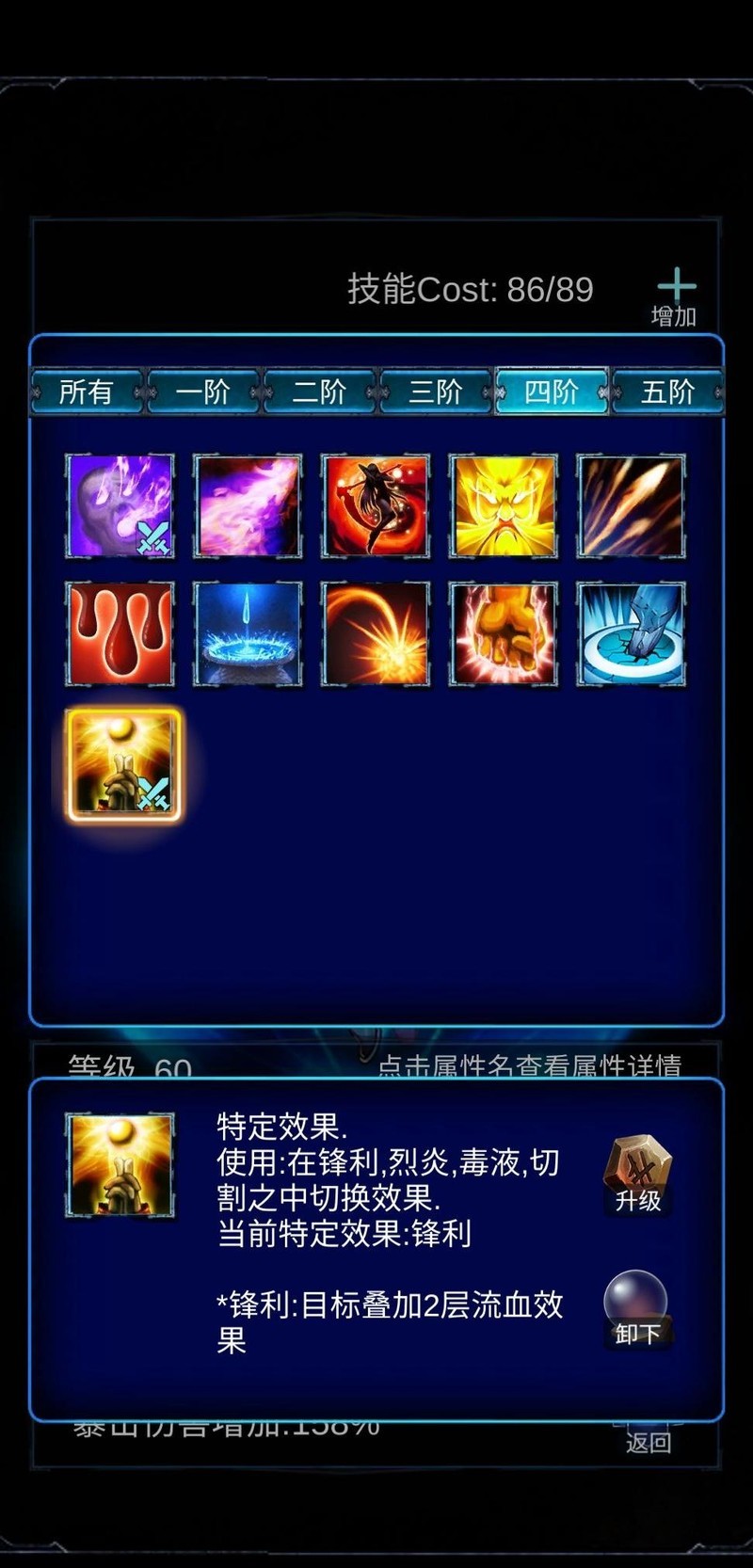 使用主动技能消亡可额外叠加中毒效果,每次提升40%伤害,但需配合狂怒之心的心火灭却特性以突破层数上限。