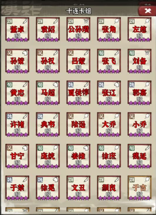 三个十连抽卡必得神将,按喜好选择国家武将,推荐主练肉盾型,前期单将强势,后期可替换为稀有强力武将。
