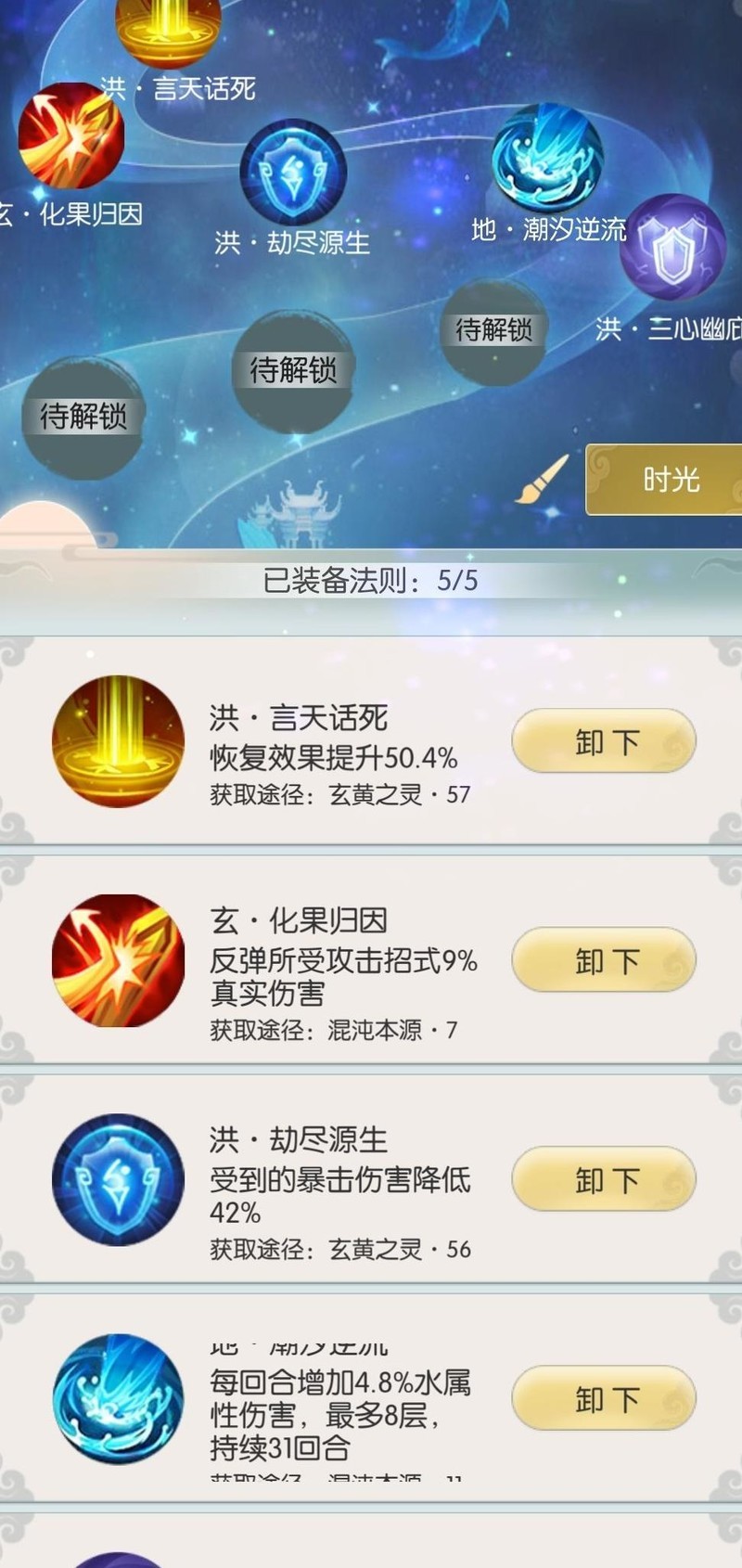 在法则选择上,起初我仅有黄阶的潮汐逆流,始终卡在最终关底boss。直到突破地阶后才顺利通关。若难以通过地阶挑战,我尝试多种搭配,发现使用剑右配合神通五气或九阴,再搭配藏剑天赋,输出足够,但容错较低,容易猝死。因此建议将法则调整为增加防御类,提升生存能力,稳住血线即可成功过关。