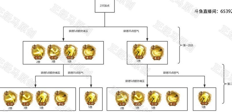 若首回合获得35点怒气,则需搭配15点怒气宝石,确保能在第一回合释放5费主动技能并接续奥义;第二回合的技能使用顺序与第一种情况相同即可。
