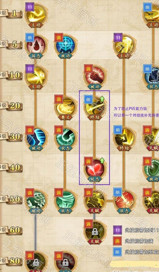 说完了PVP的加点,顺便提一下纯PVE的主流方案。目前最常见的有两种:558加点适用于单体输出,搭配瞬光闪、一闪和一文字斩,基本无需释放奥义;另一种是358加点,具备一定范围伤害能力,技能组合为高速斩、瞬光斩和一闪,同样可频繁使用一闪。具体加点所示,此处不再对PVE细节展开详述。