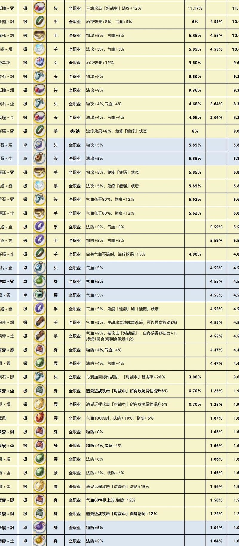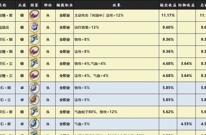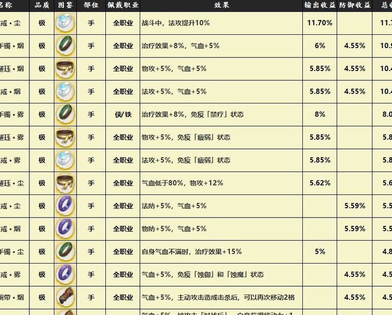 从排行榜来看,头部和手部饰品的收益尤为突出,前十名中手部占六席,头部有四个,而腰部和身体部位则表现平平。值得注意的是,收益最高的竟是一件卓品,可见饰品间差距明显,部分绝品反而不及卓品。建议玩家优先查看背包中的手部和头部,尚未集齐优质饰品的可优先打造。