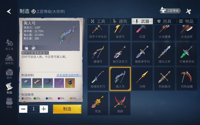 大宗师阶段建议使用离人弓进行升级。