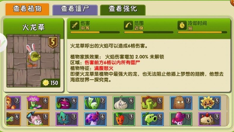 每隔两秒发射60根尖刺,还能潜入地下,以每秒0.5次的频率对僵尸造成20点伤害的足底攻击。