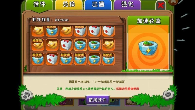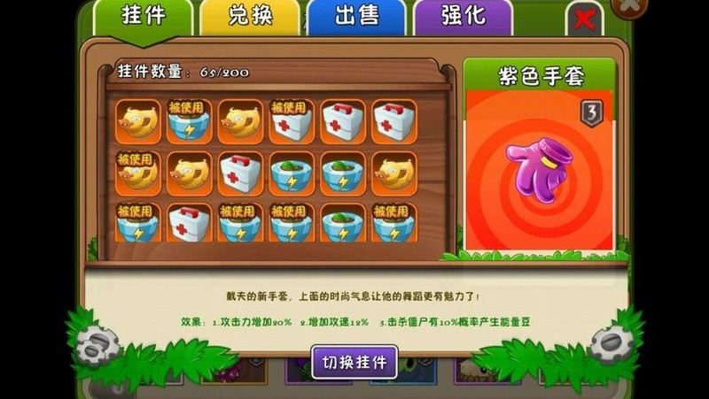 推荐挂件:紫手套、加速花盆与金化肥组合使用。