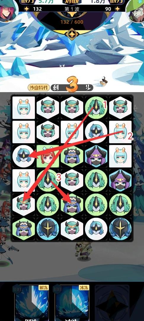 在沙盘中,优先冰冻并清除高形态怪物,可有效释放空间。通过图示操作将绿色形态消除转化为蓝色,接着便可合成为紫色史诗形态。冻结后完成合成将自动上阵,清理高阶单位能大幅提升整体战斗力。