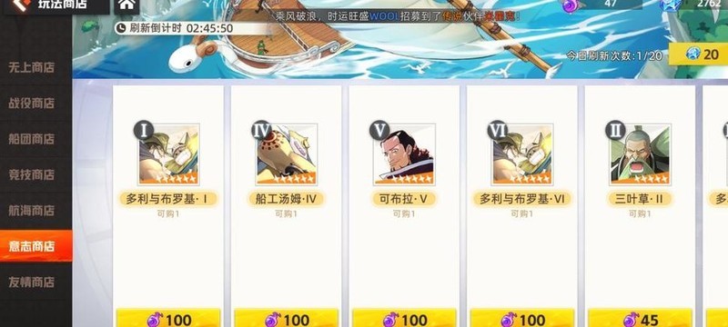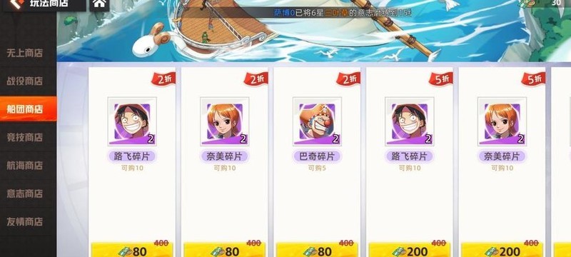 船团商店可兑换路飞、娜美、巴基碎片,是前期快速提升巴基至四星五星的关键途径之一。