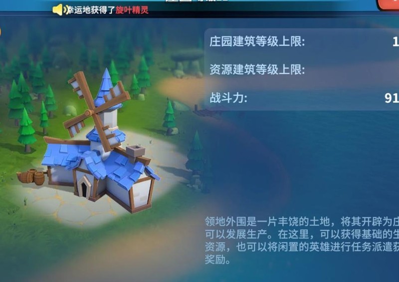 庄园内可自定义建造资源设施,升级建筑等级以提升资源产量。