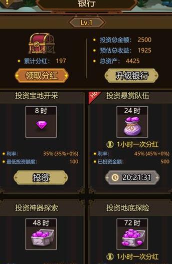 从名字就能看出两者非同寻常,银行投资稳赚不赔。前期建议战力拉满后暂缓抽卡,优先投入银行,收益更为可观。