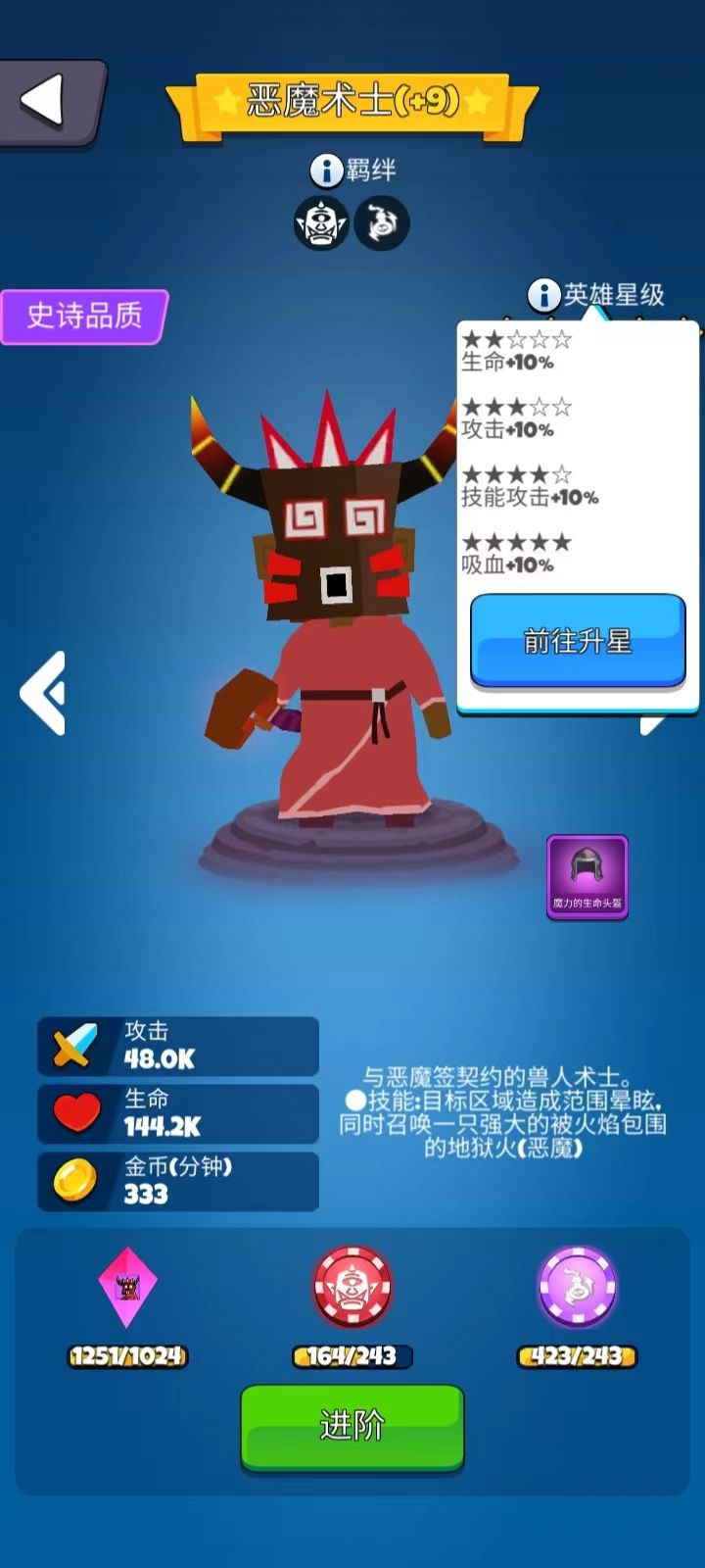 VIP5级游戏第三天可入手英雄,前期推荐恶魔术士,辅助能力强,召唤地狱火能抗能打。