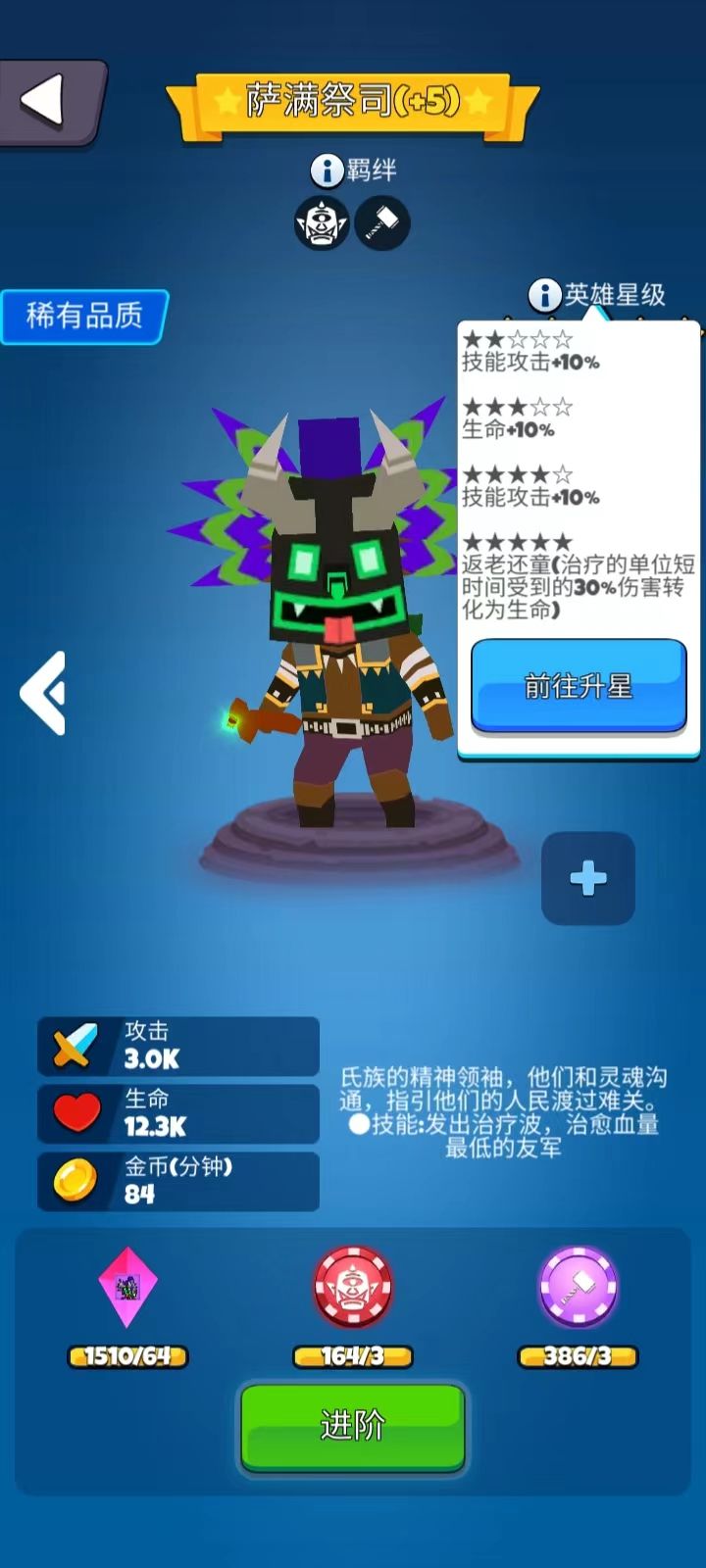 前期刷金币首选英雄,电脑3500关前无吸血最高输出,后期蛇女吸蓝玩法强势。