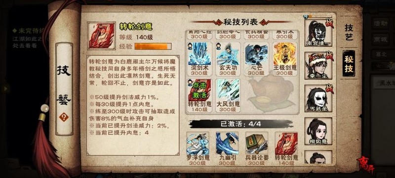 完成剑王阁王极任务,习得轮转剑意,前期阅读轮之典籍提升至百级,之后通过战斗继续成长。