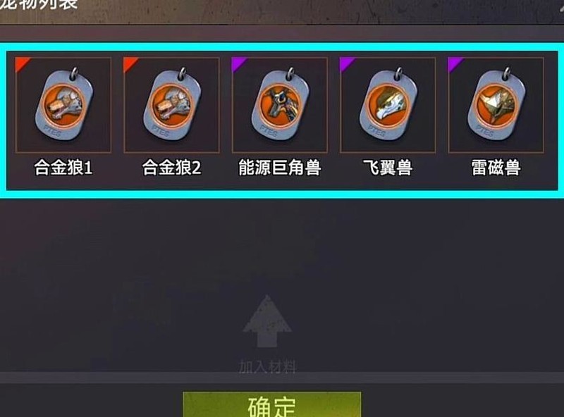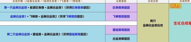 合成材料:合金狼两只、巨角兽一只、飞翼兽一只、雷磁兽一只。