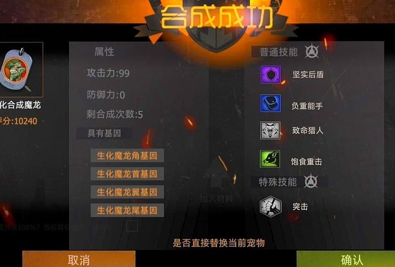 合成完成后,将诞生一头体型庞大、血量惊人的生化魔龙。
