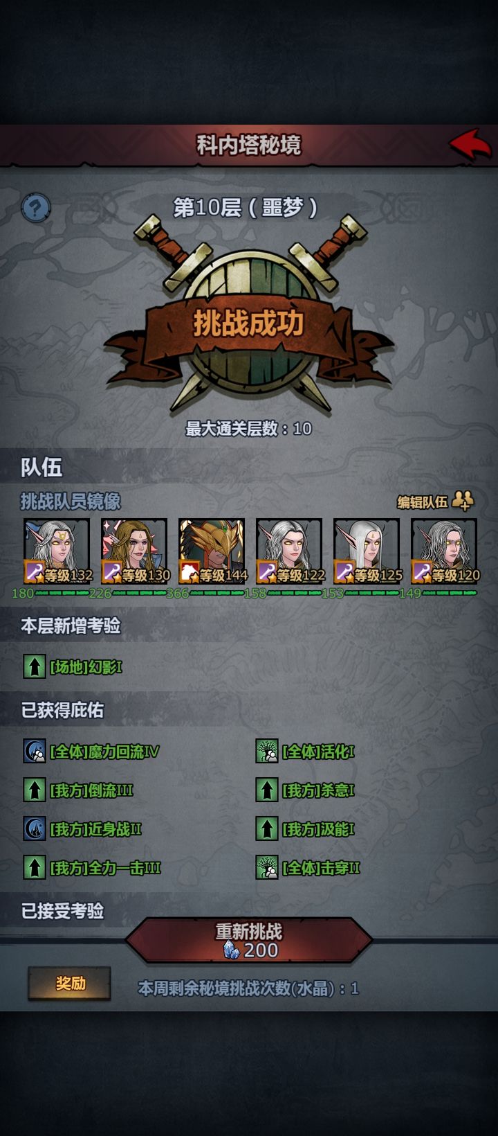 噩梦副本再度来袭,目前仅挑战了噩梦埃尔萨,整体体验不佳。同样是双狂热蹑影追风配置,先前太科神子一剑能打约2000伤害,如今却只有700左右,输出明显下降。噩梦巴赫姆恐怕难以应对,一个技巧偏低,一个敏捷过高,存在明显压制。泰勒斯应该还好,旋风斩可快速解决。